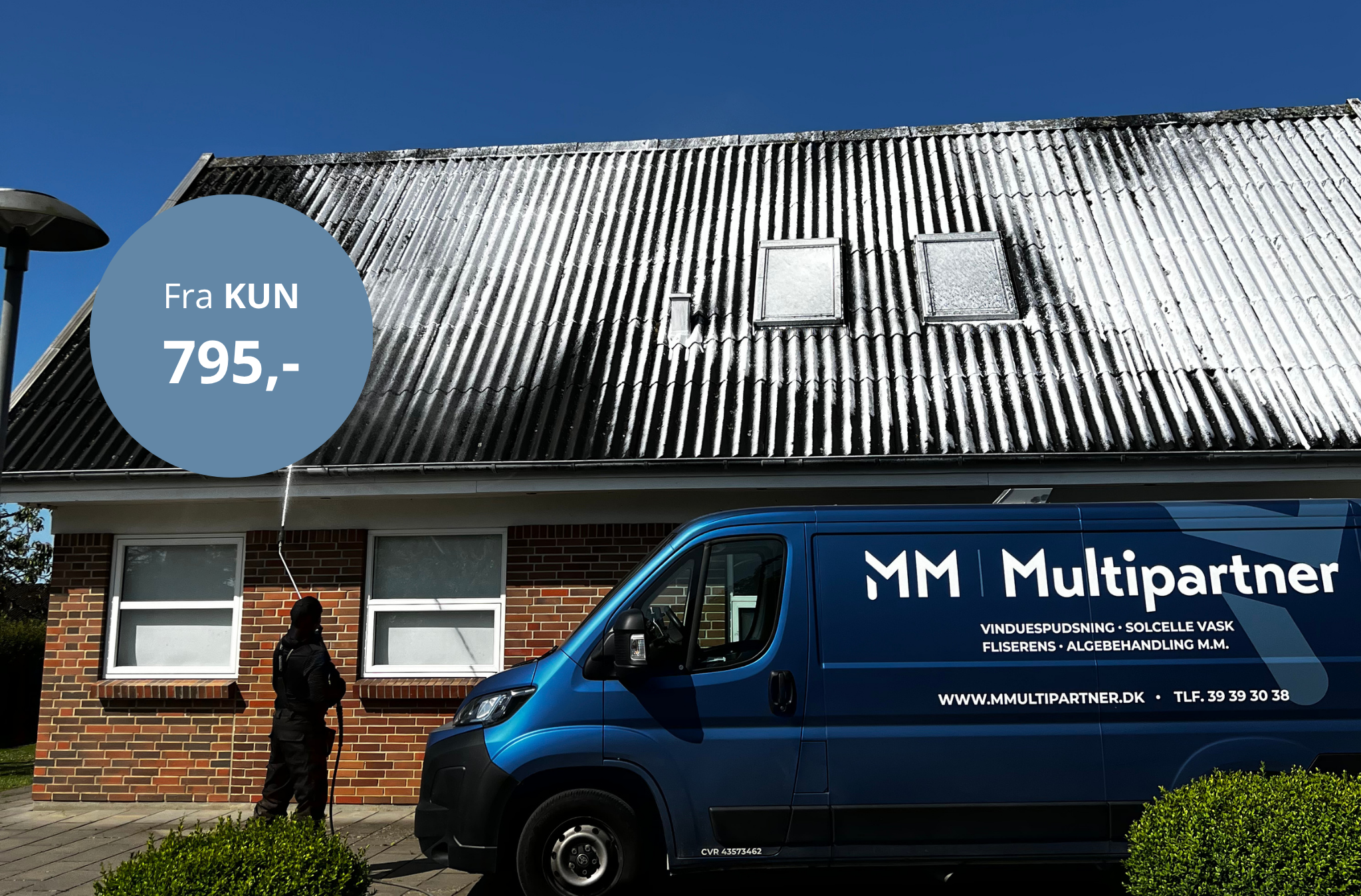 Med en professionel algebehandling fra MM Multipartner får du en skånsom og effektiv behandling, der fjerner alger, mos og andre gevækster. Vi benytter miljøvenlige produkter og sørger for, at behandlingen udføres grundigt – altid med fokus på kvalitet og din tryghed.